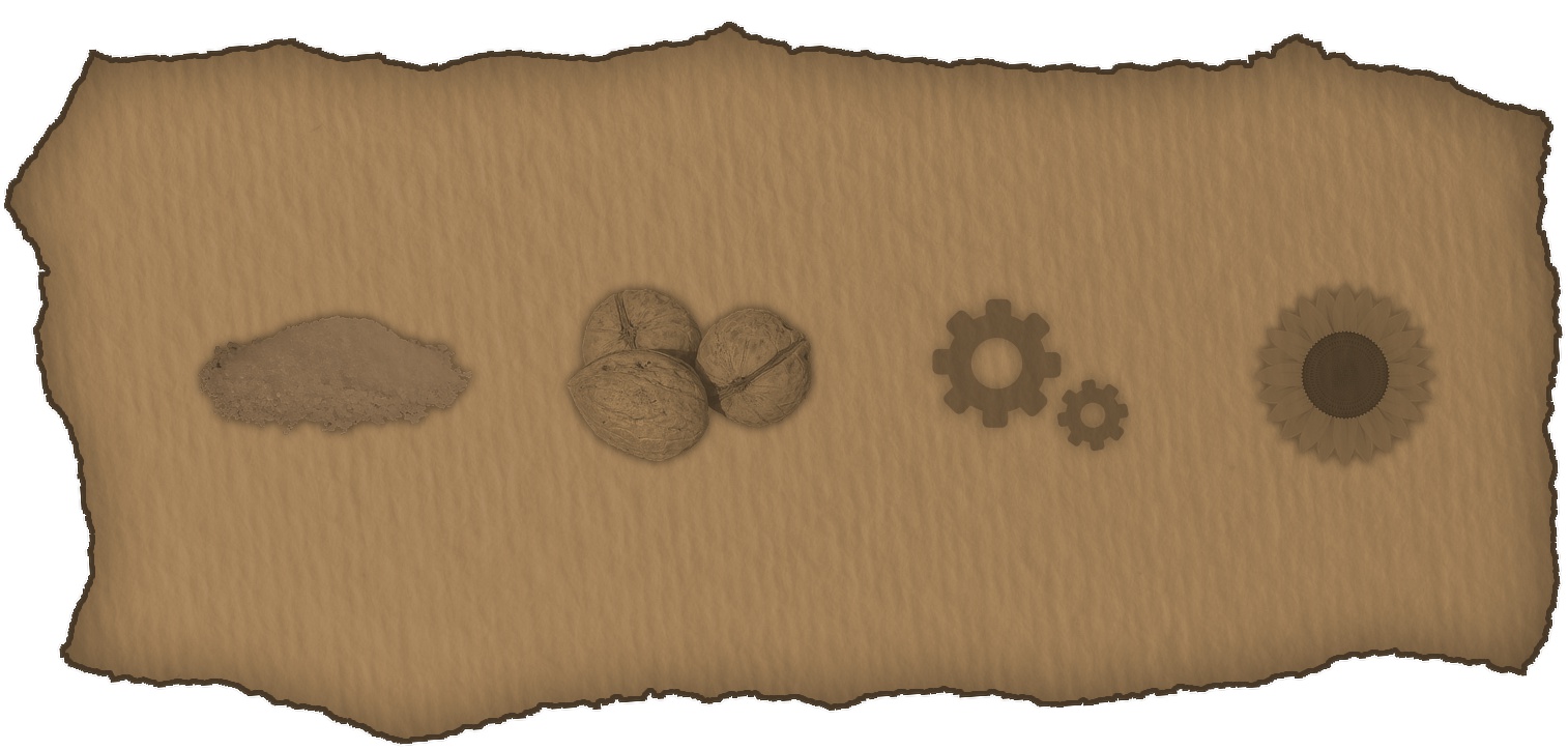 Other than the salt, the hint shows walnuts, gears (representing a machine) and a sunflower.So, after the salt, from left to right, we got walnut oil, machine oil and sunflower oil on the shelf.