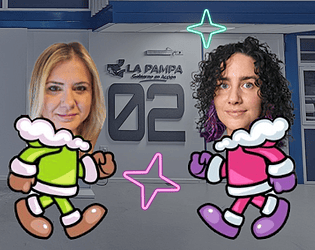 Salta por el escenario tratando de completar la palabra GAMEJAM antes que tu adversaria.