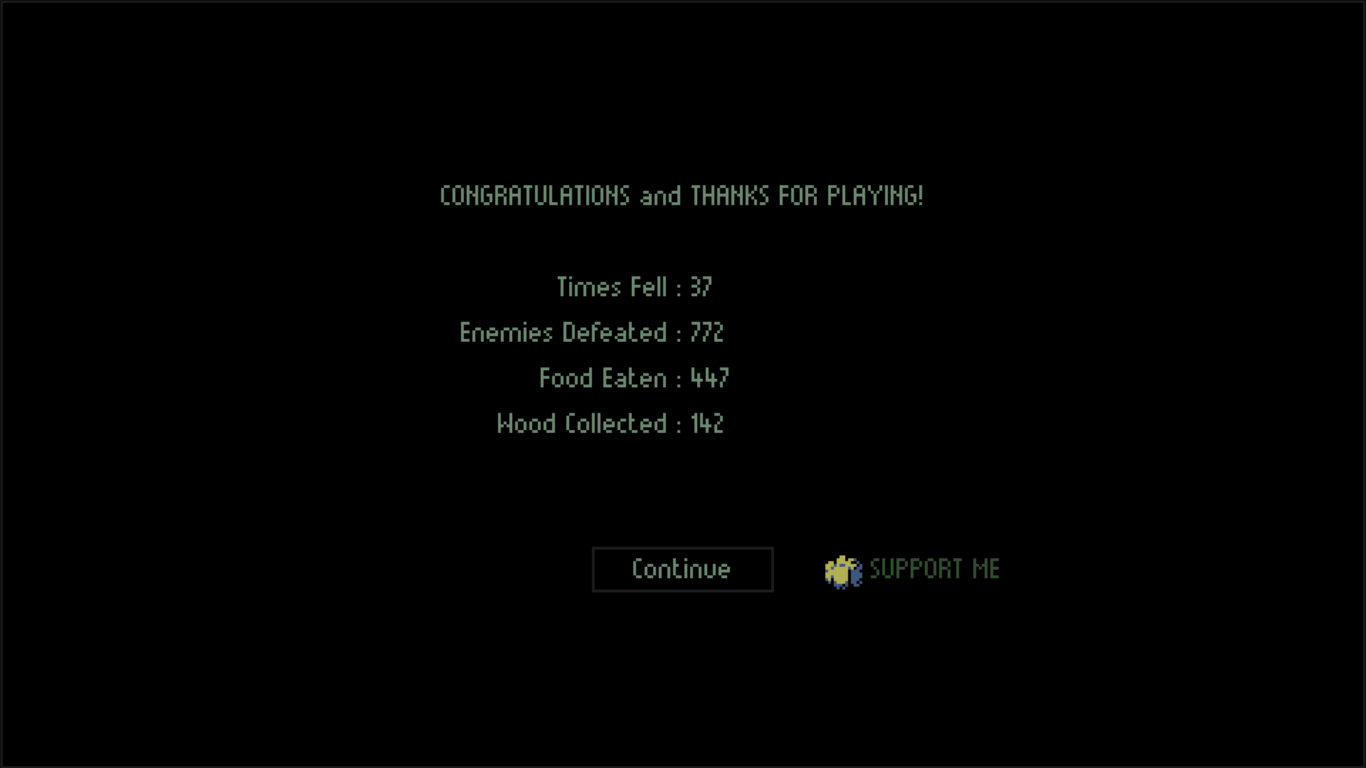 Great game, I fully maxed all equipment. The only thing I saw that seemed like a glitch was that resources say they're new again if you spend all of it and then pick up another one. I'd recommend a variable that checks if you've ever collected a resource vs. if you currently have it. Great game, might buy it on release!