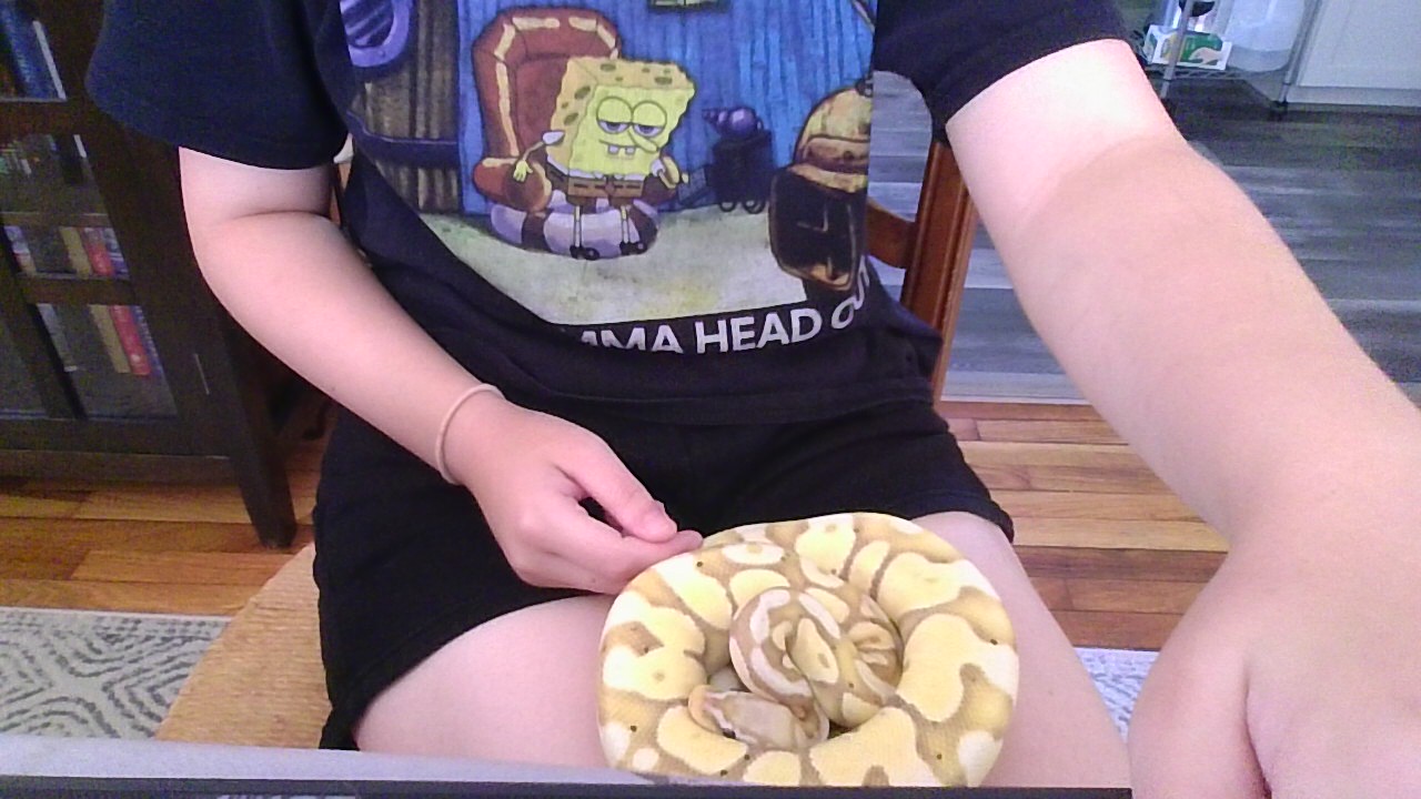 (This is a ball python, I think shes a banana snake. Not sure though haven't seen her in a minute. She was my old babysitters pet.)