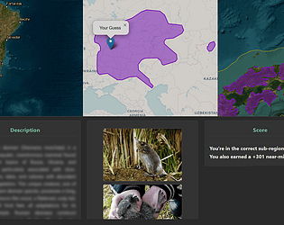 You get partial credit for correctly identifying the correct geophysical region or subregion for a given species. The game features over a hundred modeled subregions — from the Gran Chaco to Chukotka!