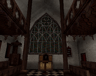 Wobbly ps1/silent hill style church level I'm working on using blender/unity