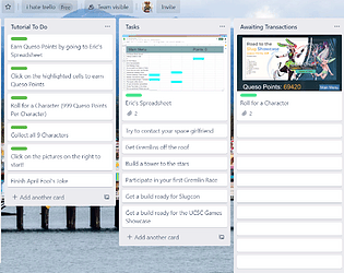first of all I MISS YOU second of all yeah there's no win/lose condition coded but if you fall on the space it's like the "game over" kinda thing. I REALLY wanna go into making the card ideas I had (the pachinko card / bowling card) because I think that would be really fun to do. Here's hoping I have the energy to continue this or if my other projects / work gets in the way 😤