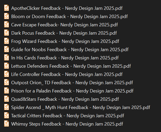 In the feedback documents, you will see that I gave a rating system out of 10 points, while on itch it is a system of 0-5 stars. So I converted over but in a slightly unique way.