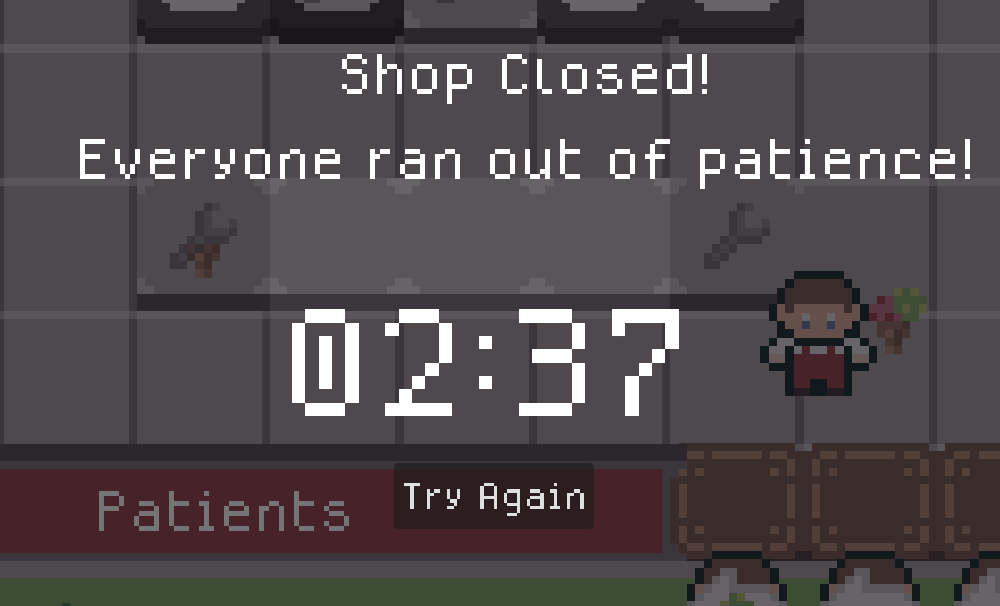Took me 5 failures to figure out how to play the game, x). Apparently you need to put the cones and ice creams on the table before serving them (a tutorial would be nicer). Also, the choice of art and music are REALLY good. They blend very well with each other. One thing to note, is that at times the player felt a bit slippery. and you might make the patience bar go a tiny bit slower, cuz sometimes everything that is broken piles up and you have no time to fix them, x). But don't make it too slow tho, otherwise it would be way easier and no fun. Overall, the game feels very polished, and a lot of fun for people who like fast-paced games :D. Had a blast playing it!