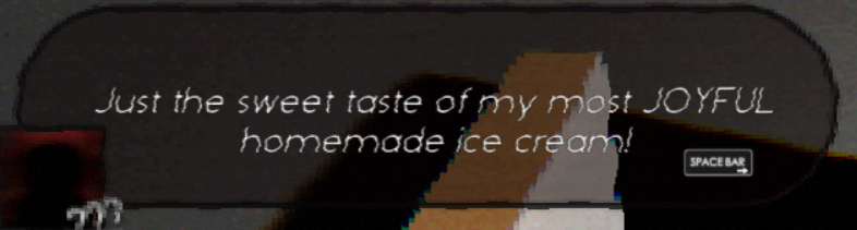 Ignorance is indeed a bliss. If only the flies would let me ignore xD. "homemade" lmao. I have never seen anyone so motivated to sell his own homemade ice cream. Anyway, the atmosphere is great! If only you could have also added some voice acting, then it would have added a lot more to the atmosphere :). Also, very satisfying sfx you have chosen! Great game, keep up the good work :D!