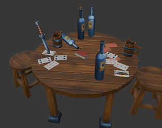 A set of tavern-themed table props for scene dressing and interior decoration. Not PBR (Base Color only).
