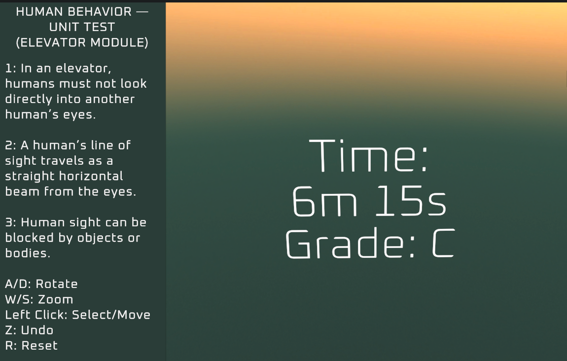 Simple (annoying) puzzle game, I thought the doors just lock by themselves when I investigate inside, turned out it was just me pressing the door buttons too many times caused them doing that. The room a bit too dark for me trying to find teleporting objects and buttons, but this could be by game design. Cool game though!