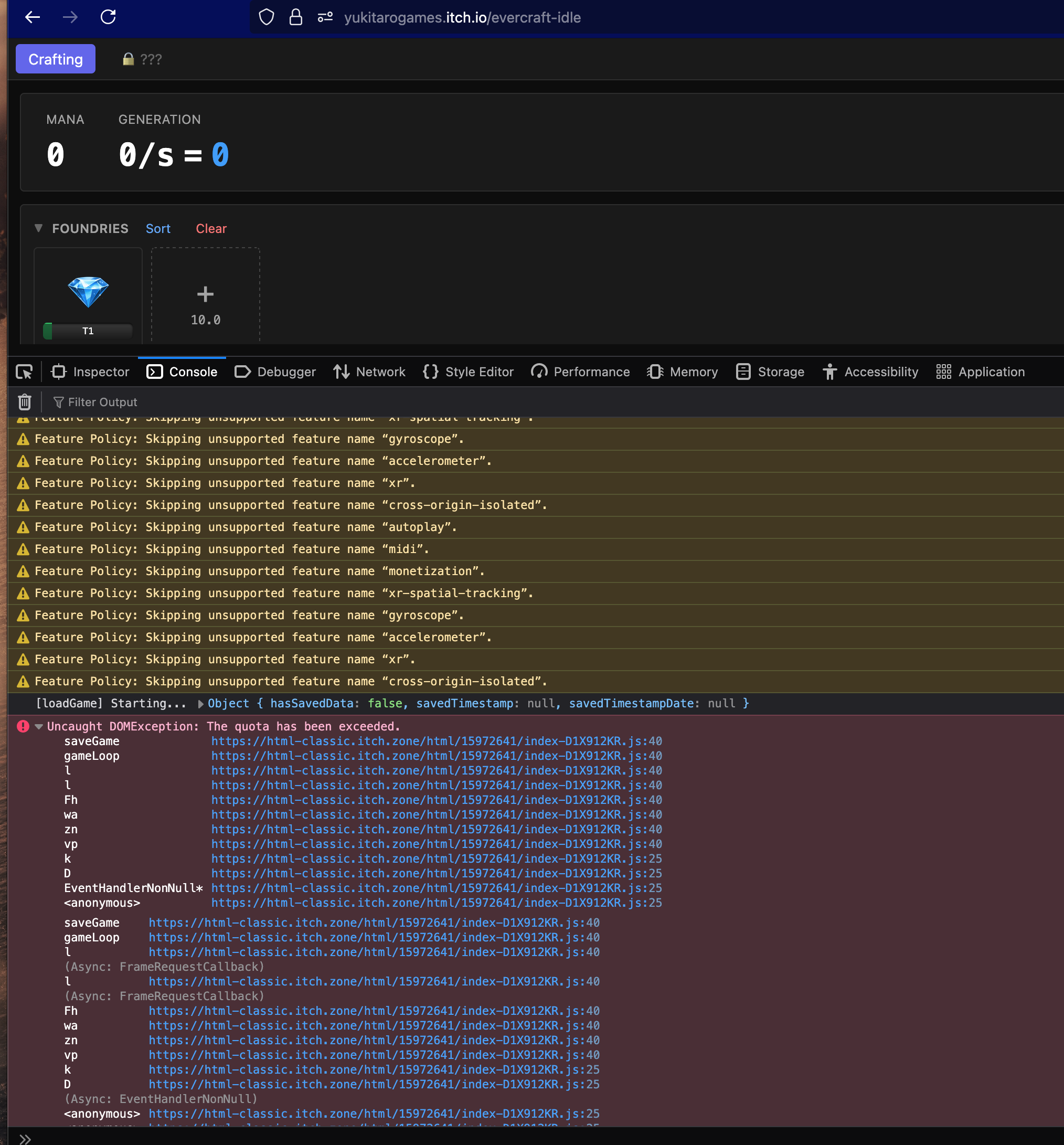 Not a focus thing. I can interact, clear foundries, place a T1 gem back in, but nothing progresses. Here are the errors I'm seeing in the console: