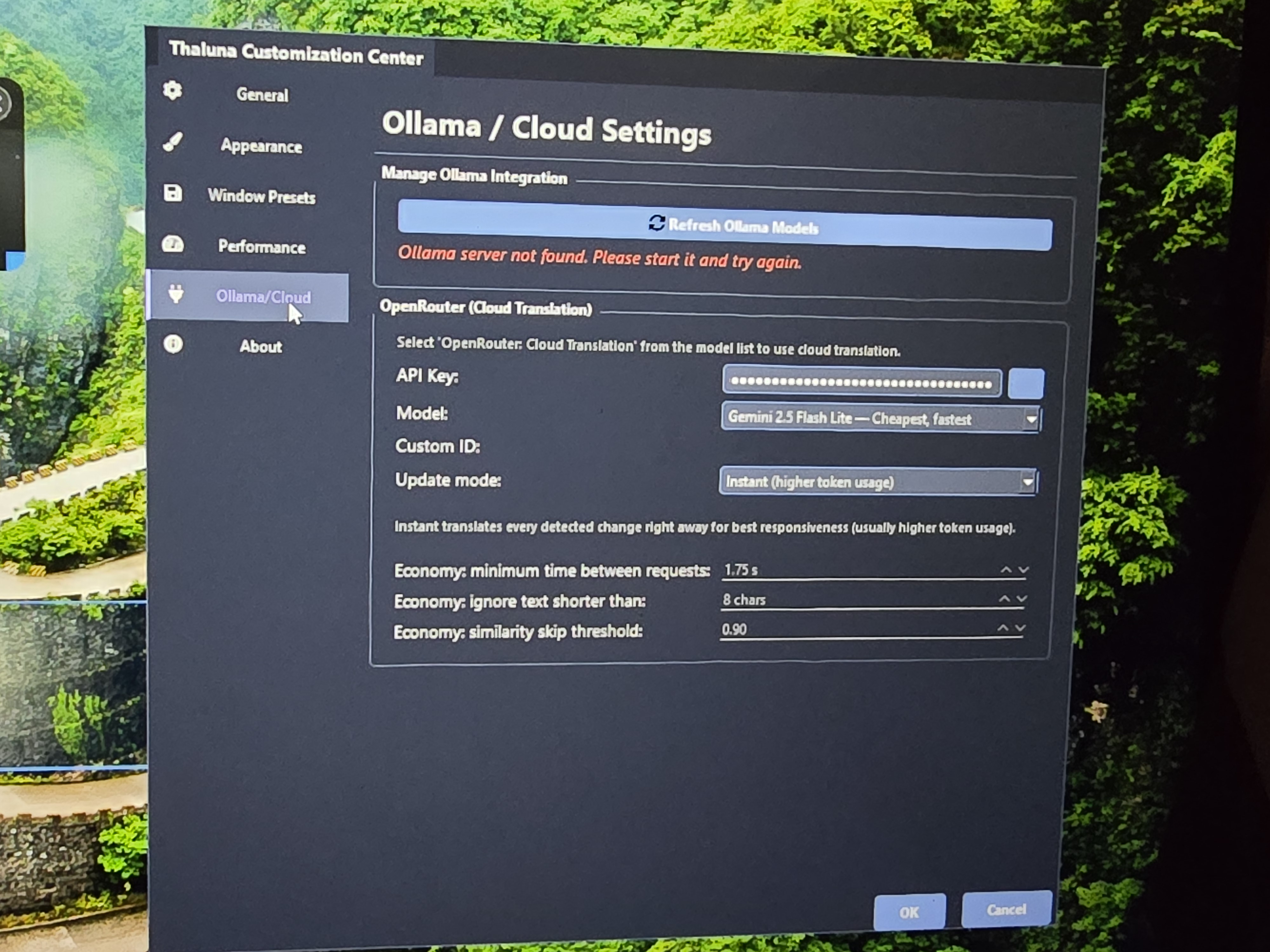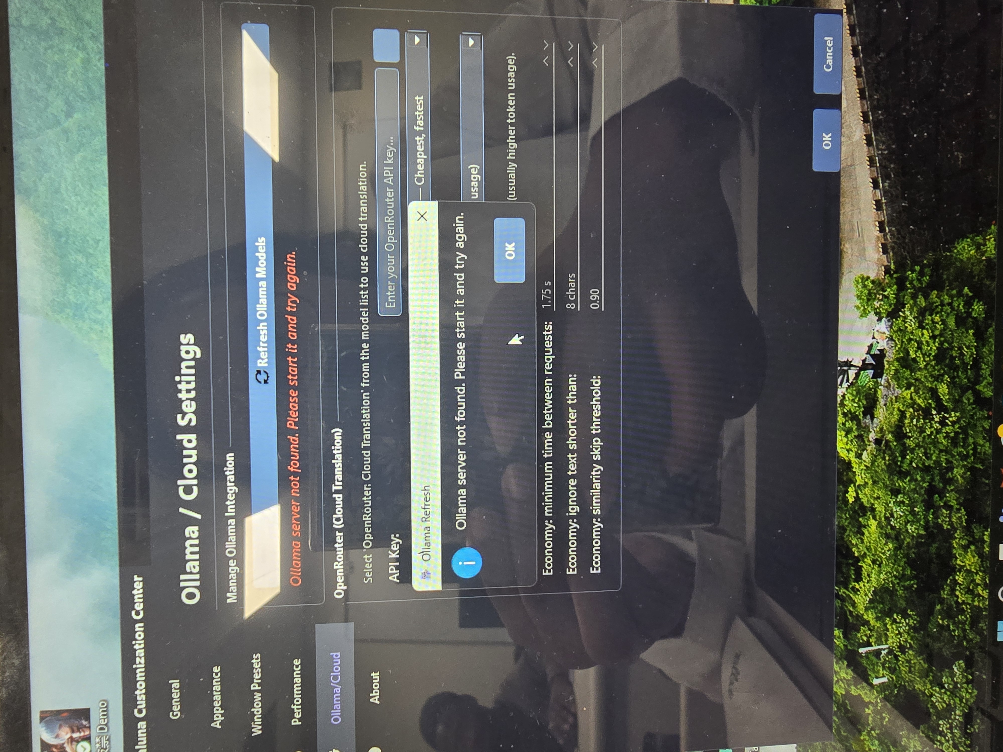 I am not sure if I did it right but I got the API key and copy and paste on the thing but I didnt see the language thing unfortunately so I'm not where it is but I'm wondering if I did do it right though (You can ignore the Ollama server thing again, since I just realized I didn't have to do it again)