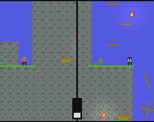 Think about being able to grab anything (I think you should understand with that ?) btw that purple button is hard top press so you may need to retry several times when you have the solution to press it, and yeah the end of the game is pretty confusing si sorry for all the problems! (We had 3 days so basically we ran out of time)