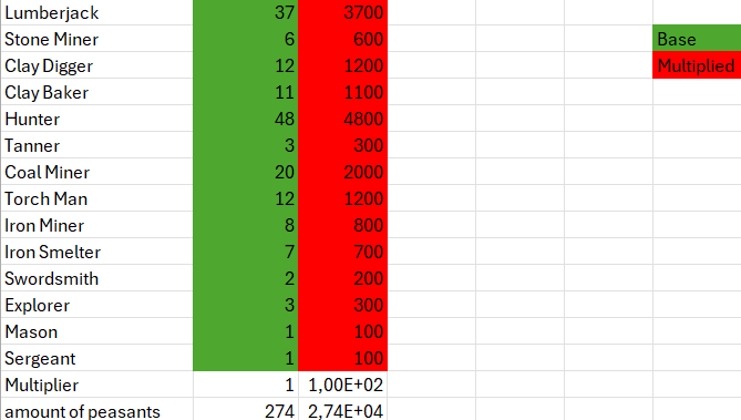 i did something similar in excel. i made a quick litle calculator to see how much you need of every job assuming a base of everything being +1