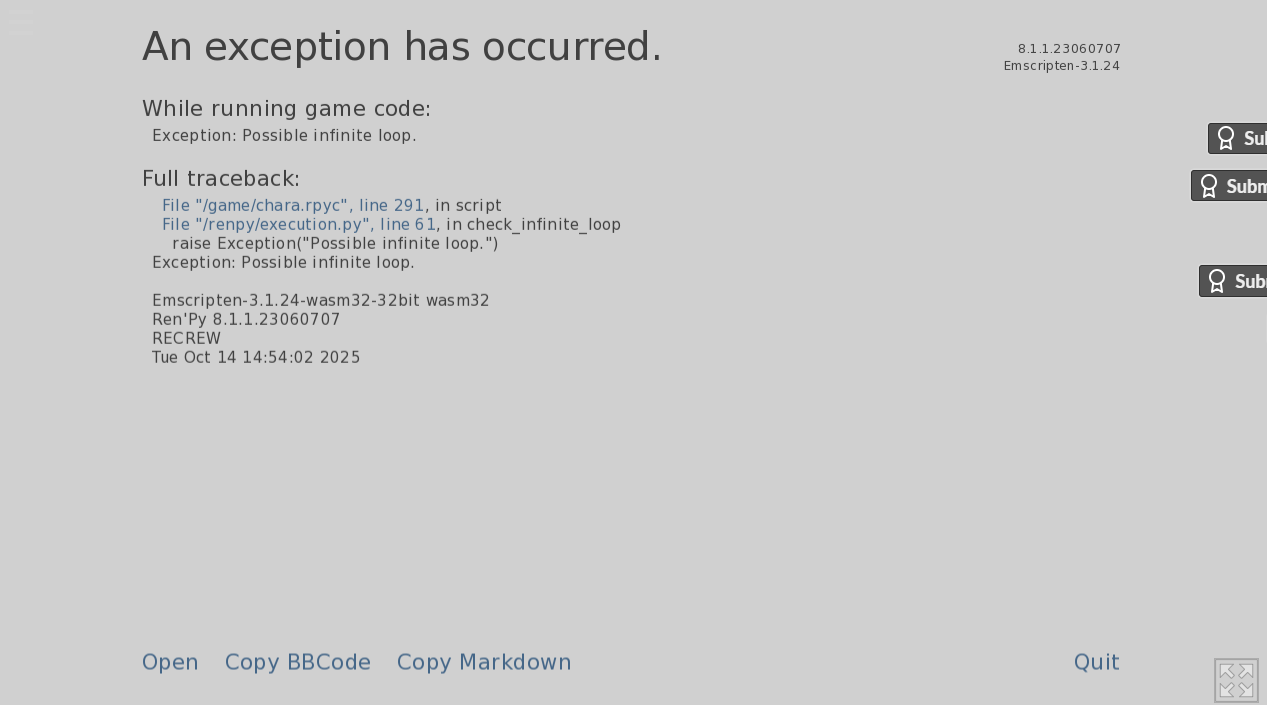 Hey there, your project seems interesting. Are you still planning to continue? I notice you're still using Ren'Py default UI aside from the textbox. If you're planning for future release with more polished visuals, I'd be glad to help! Here is my rate and portfolio for consideration