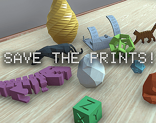 The art of this game relies heavily on the beautiful work produced by the generous 3D printing community, and I'm very grateful to them. I hope you have a bit of fun with Save the Prints, and greatly appreciate you checking it out. If you want to get involved in it's ongoing development in any way, report bugs, or just say hello; please join us on Discord here: https://discord.com/invite/7ZWD2Yx