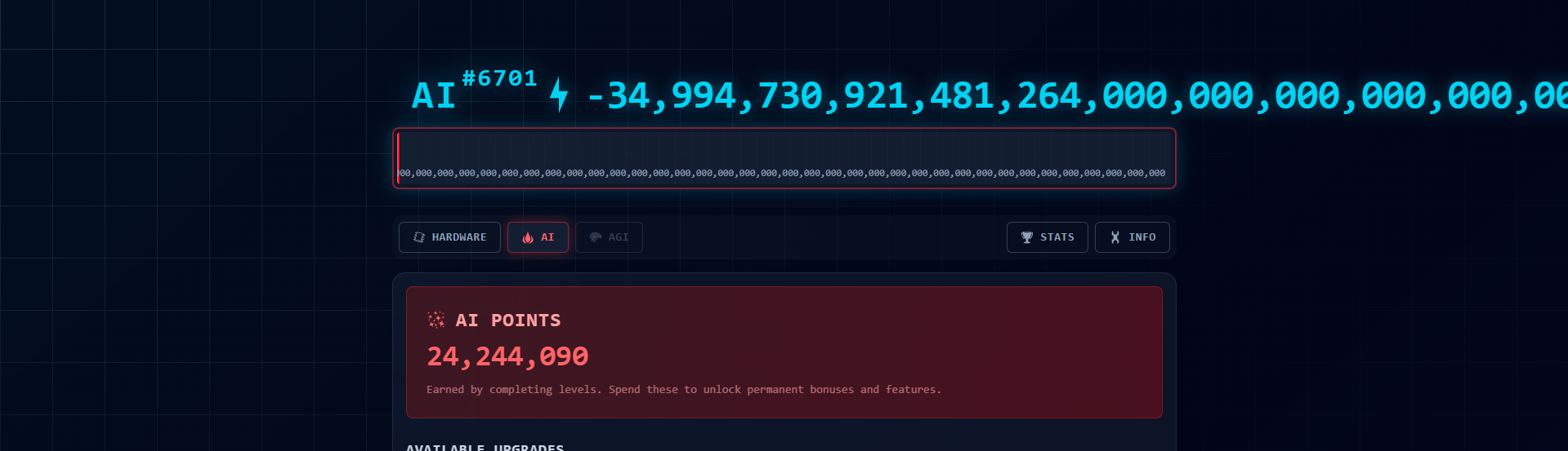 bad news, since upgrading the "reduce amount you need to level" thing also reduces your maximum storage capacity (which, just, why?????) if you upgrade it too many times before buying the leveling one, you get softlocked, since you cant level = you cant prestige and reset the upgrades, and you cant reset the upgrade = you permanently dont have enough energy and cant buy the leveling upgrade.