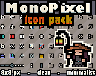 A clean minimalist pixel icon pack designed for game UI and small pixel art projects.