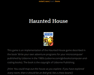 Text-based implementation of adventure game from 1980s Usborne learn to program computers book