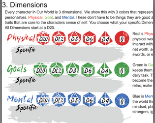You could add even more layers of separation on top of this for added clarity. Different fonts, text sizes, colors, or even go farther and have each be its own energy and design style. Like powers are all spray paint graffiti, and materials all powerful straight lines.