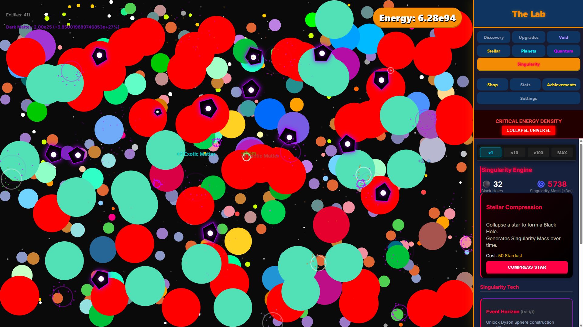- Zero to Singularity: You start discovering elements on the periodic table, but eventually, you'll be managing Black Holes, harnessing Dark Matter, and researching Quantum Mechanics.