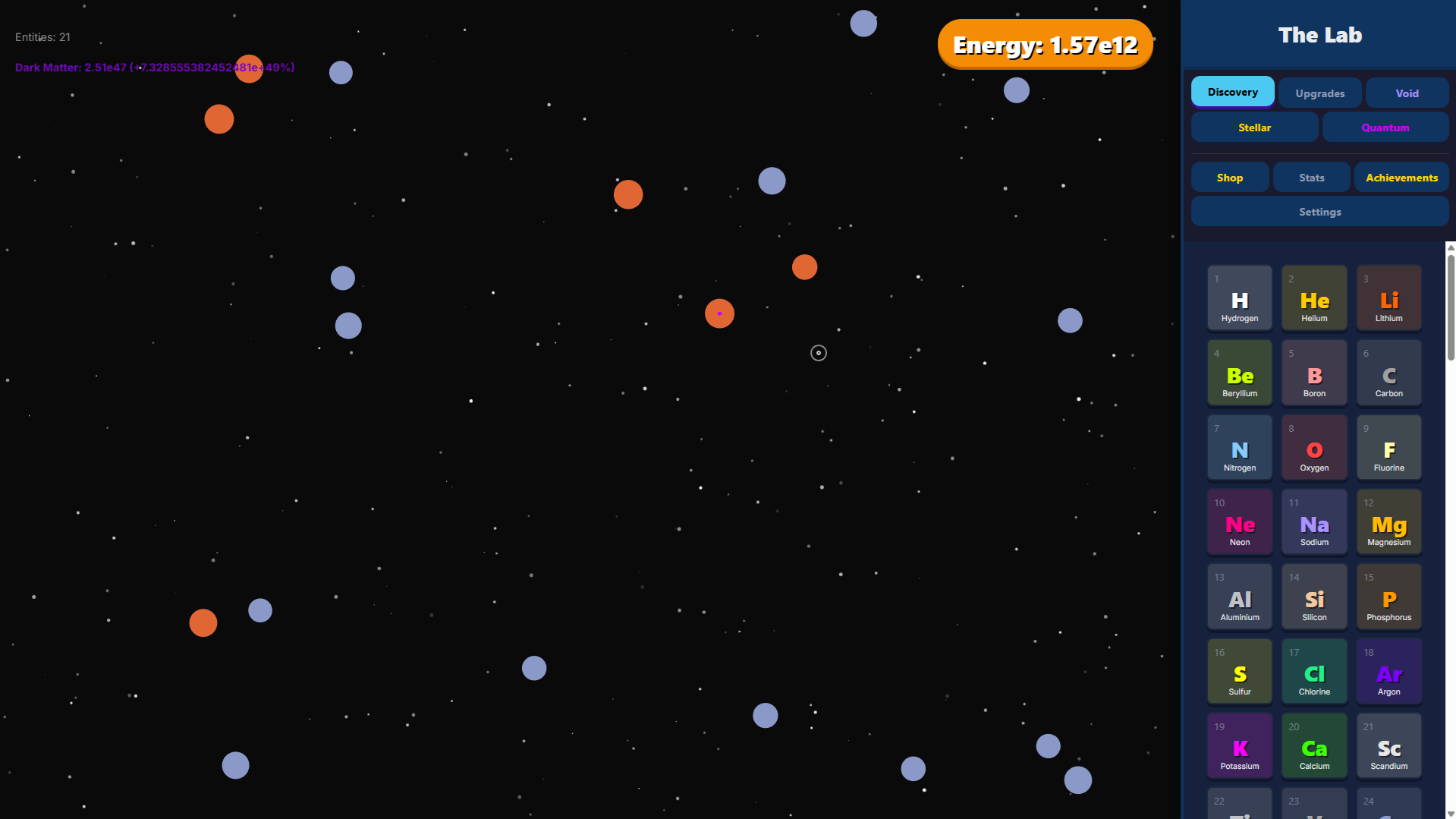 I wanted to make something that starts simple—just one Hydrogen atom—but unfolds into something much bigger without feeling like a generic "buy multiplier" clone.