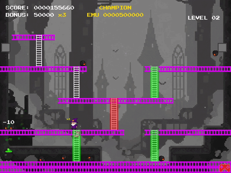 I wanted to try a twist on classic arcade ladder concept. Ladders are a high-risk/high-reward mechanic. You have to climb every ladder in the level to turn them all green. You can then rush to the exit.