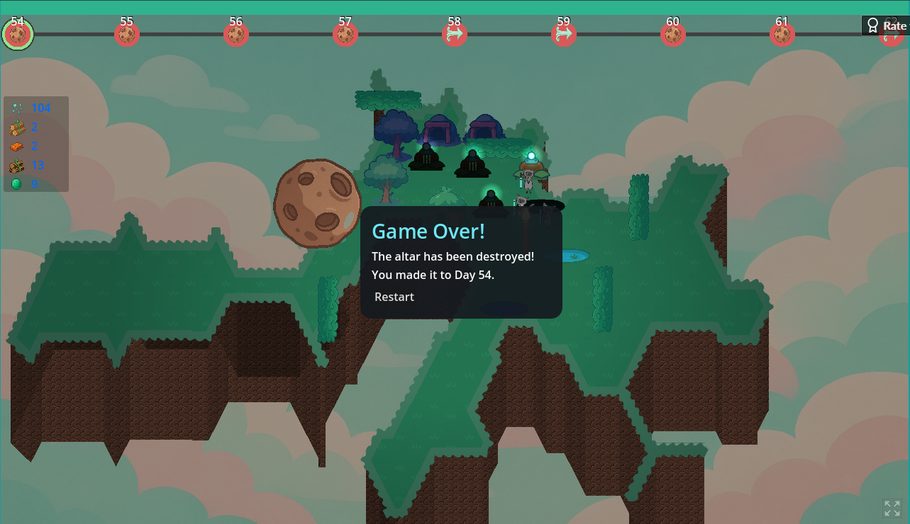 This is really creative, and has a lot of substance for a game jam. My experience so far has been that a lot of games have just a few levels, so coming into this I expected probably 1, maybe 2 days actually made, and then being like "That's what we got done, thanks for playing!" but you made a full experience from beginning to end. I was not expecting it, and it was really creative and had lore and depth and everything. That's really impressive, good work all around. I also appreciate the fact that you credited all the creators of the assets that you used.