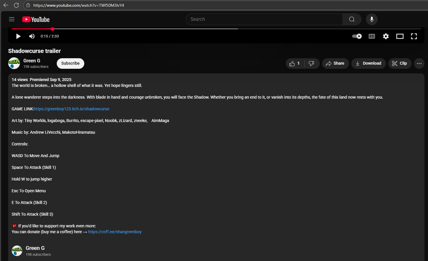I enjoyed playing what I played! I feel like either I'm bad at the game, or I'm softlocked though. I beat the bunny boss, got the double jump, and I can't double jump high enough to get out from the part where you drop down to enter the area before the bunny. I see there's a platform sitting against the ceiling to the left, and I'm thinking maybe I needed to activate something before dropping down here so that the platform would move? Idk.. but the music is nice, the art style is really good, and yeah. Overall I'm sure it would be a lot of fun if I didn't feel trapped in this corner of the map.