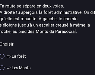 Pour le score d’habileté trop faible au premier lancer de dé, je me demande si je ne vais pas ouvrir un ticket sur Github par rapport au générateur d’aléatoire de moiki. Chez moi il fait des séries de 1 et de 2 bcp trop souvent je trouve (4 fois 1 d’affilé, et beaucoup de 2…)