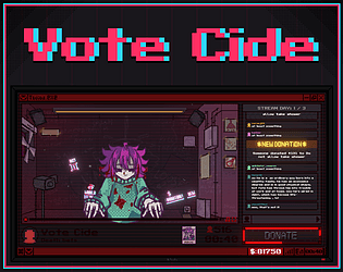 VoteCide - is an economic simulation game in which the player acts as a spectator and judge on a darknet stream