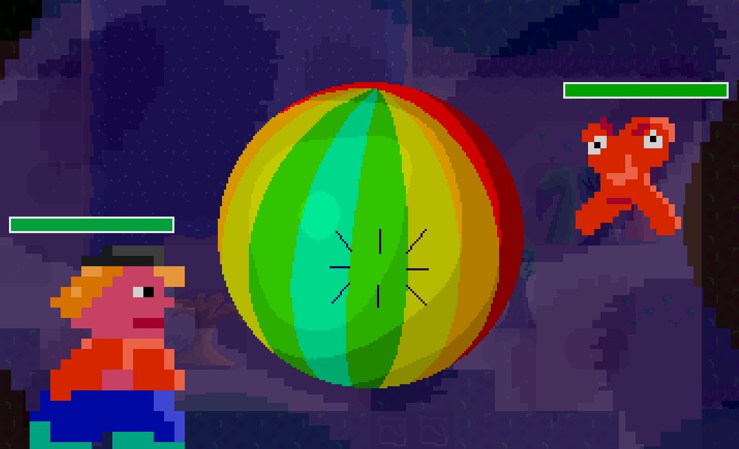 Something you didn't mention but which bothered me was the background in battles. It's fine, it isn't too distracting, but I also intended to have a few different backgrounds for battles for variety. In fact, my Original idea was to have a background that resembles the world around you but "first person", and which would also rotate when swapping from your perspective to the enemy's perspective. But I never attempted to draw that with the other things needing doing.