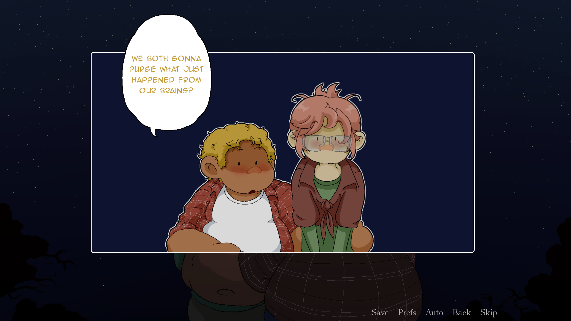 Either way, thankyou for making such a grate game! I'm hopelessly invested in the characters at this point