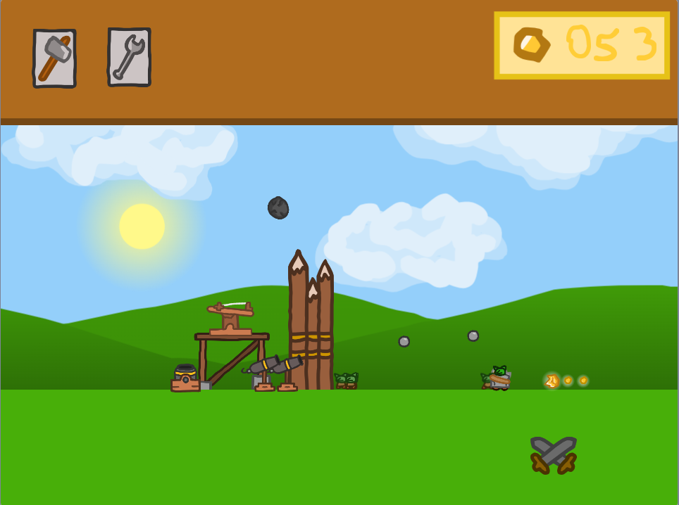 Steel & Goblins is a strategy game where you defend incoming goblin attacks, build defenses with your hammer, rotate them with your wrench and try to make it to wawe 10!