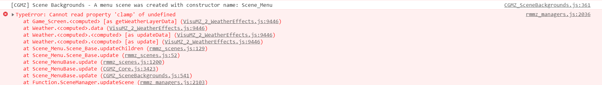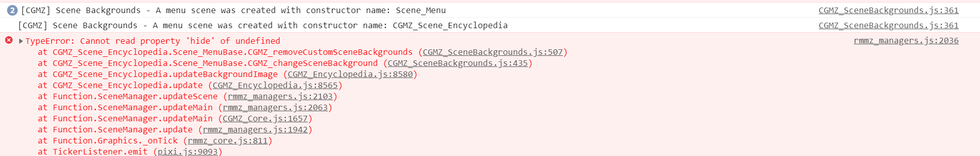 I turned off all of my plugins except for yours. I stopped getting any errors, but no image showed up for the Encyclopedia scene.