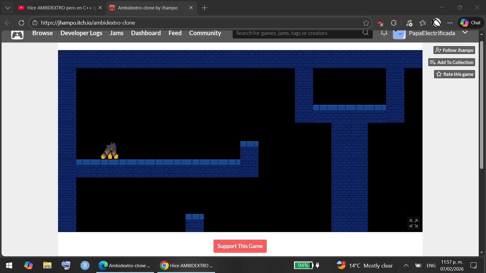 el juego en el navegador su visualizacion se ve incompleto