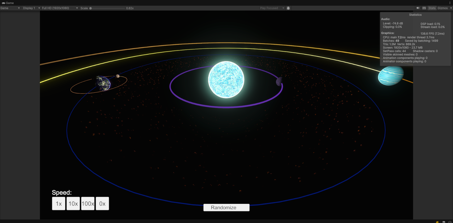 Asteroid belts are a great idea though, they can be implemented with a VFX graph system with a few unique meshes for the asteroids, spawning them procedurally with randomized scales, sizes and rotations. I actually have individual mesh based asteroid generation in a private system, so I will definitely prioritize cleaning it up and publishing it as a system for Procedural Planet Generation.