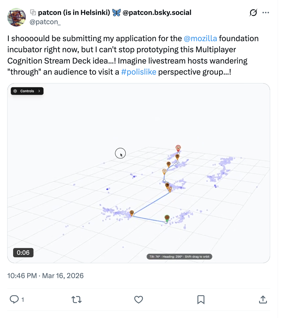 Thanks! heh yeah, I steward some communities that revolve around building out polislike tools, and I shared an invite to participate. Our tools and stories share a provenance, I suppose. So Raul and I are building on the same success stories of the tool Pol.is, and similar math primitives :)