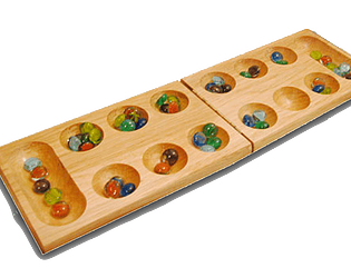 Quem começa escolhe uma das cavas do seu campo, pega todas as sementes dela e as distribui, uma a uma, nas cavas seguintes, caminhando no sentido anti-horário.