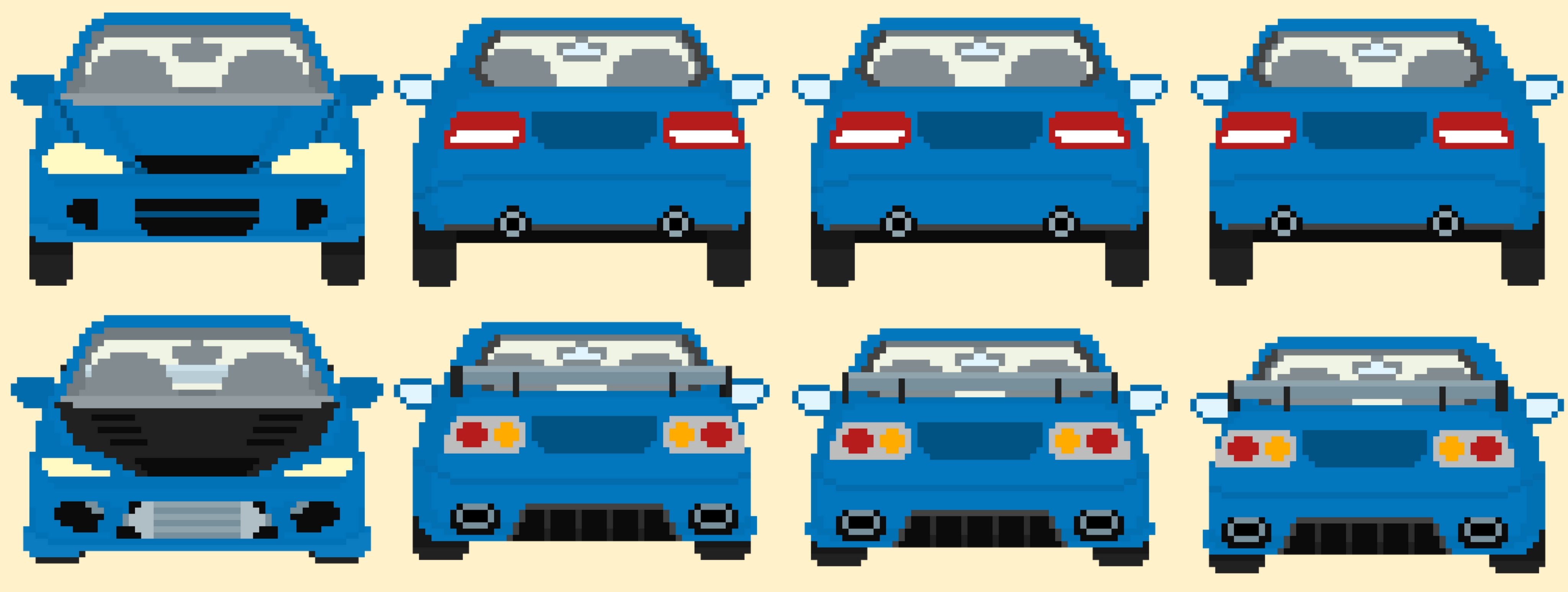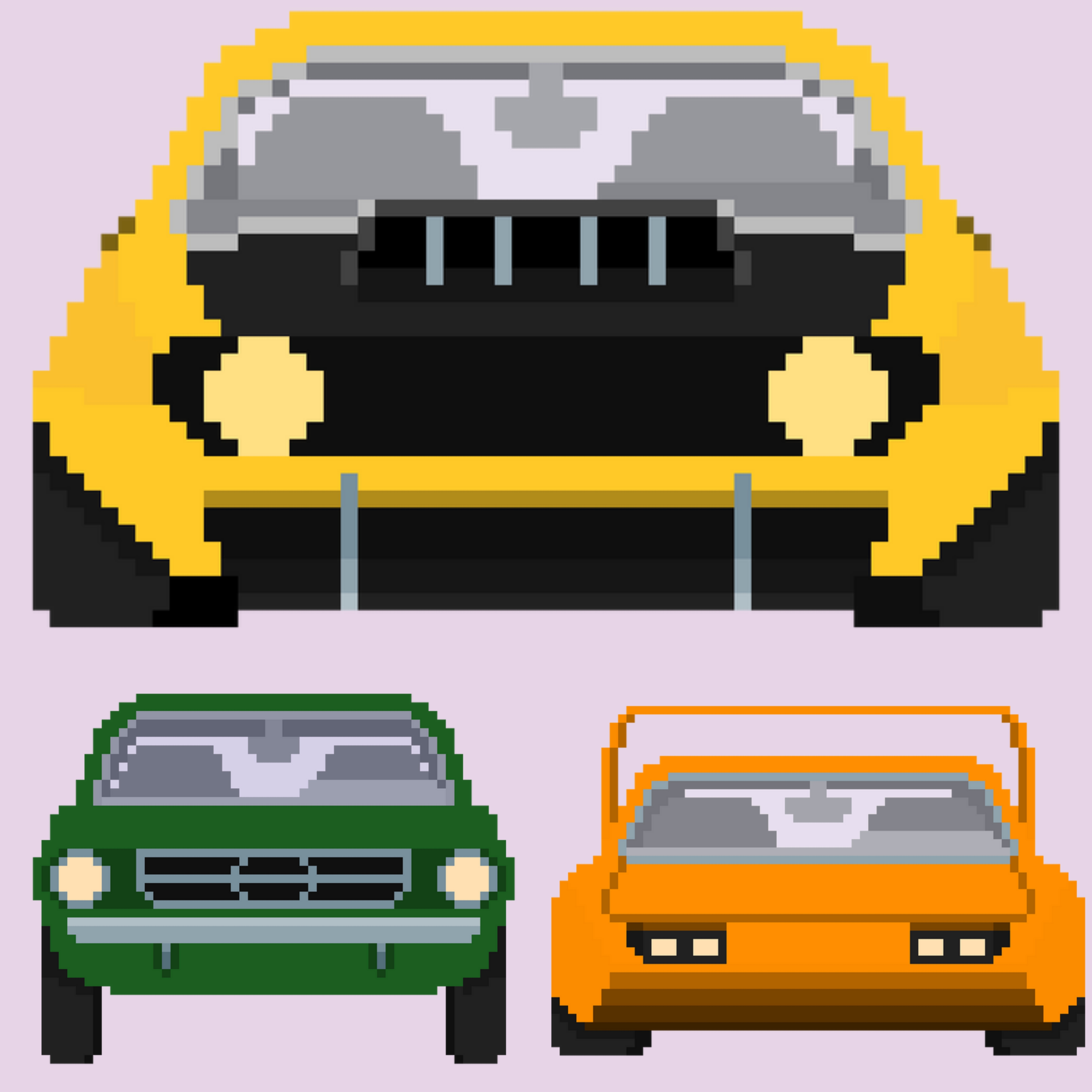 Hi, I just wanted to let you know that I'm going to focus for a few months on making 64x64 car sprites, They will be distributed in payment packs (Some cars may include variants) They will mostly be themed packs (Muscles/Europea/JDM/DTM/GT/LM etc...)