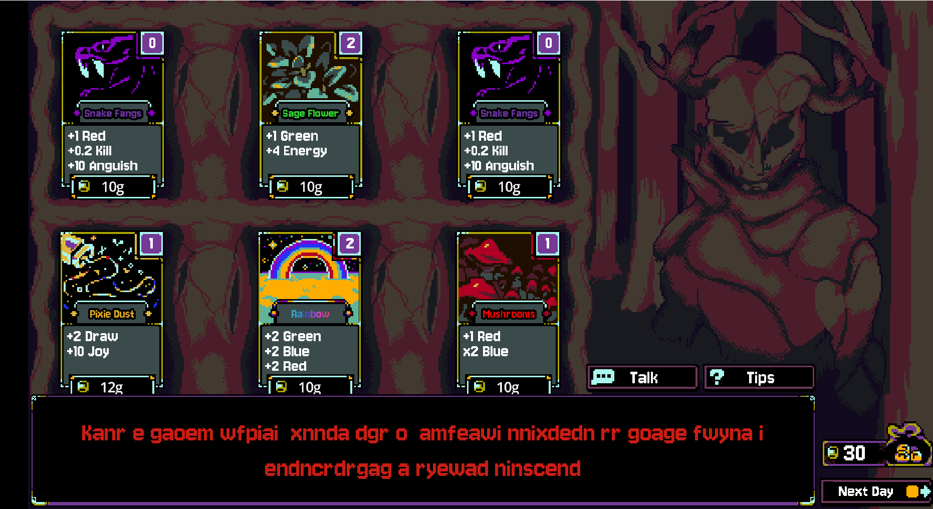 Also if you spam the "talk" or "tips" button in the store the text collapses but I like to think that the devil on the background speaks to you in his native language, pretty cool stuff