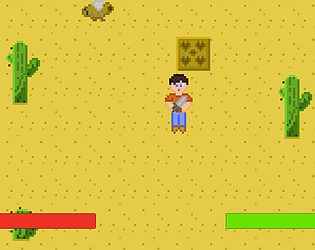 A game where you're lost in the desert and the only way out is to find all hearts while slaying zombies and giant bugs.