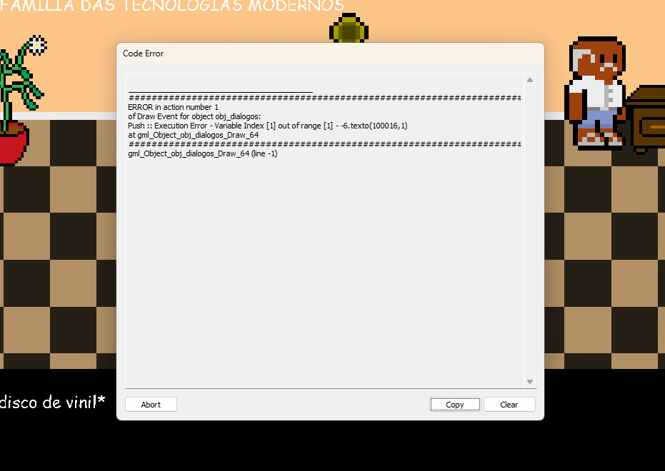 na primeira vez que tava jogando nao tinha clicado na parte para ver os controles dai quando eu pequei o disco eu tinha apertado a tecla Q ou E eu acho dai apareceu esse erro