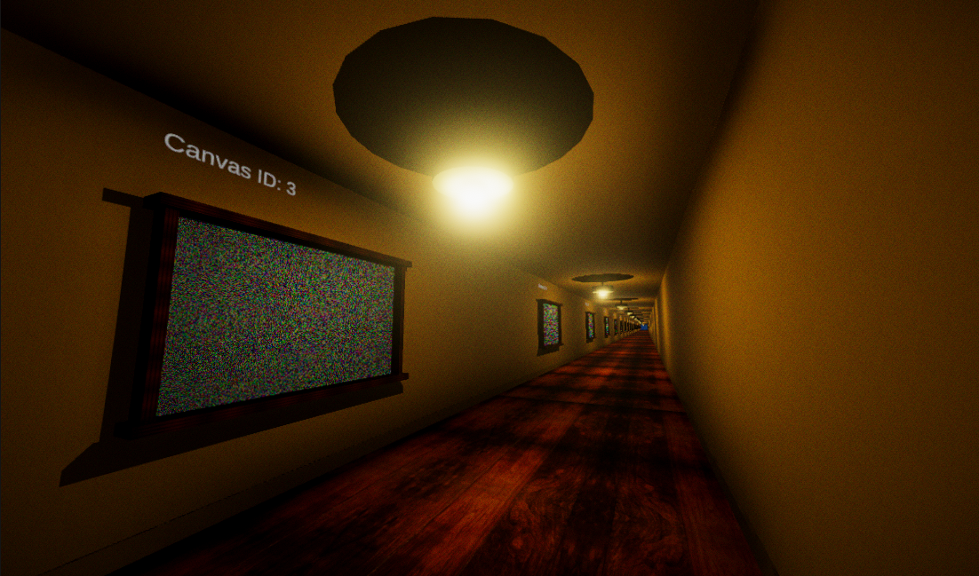 Now this game that you are seeing now, takes that concept and turns it into a walkable hallway like you looking into an art gallery that stretches on forever. Each canvas you encounter is procedurally generated, made of pixels arranged in ways that will never repeat. The hallway goes on forever, and every step forward reveals another unique canvas.