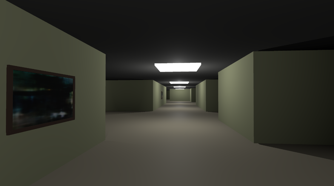 You walk around the game looking at these unique paintings of combined liminal space for you to look at.