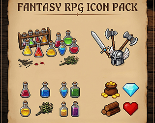 A massive collection of 140 high-quality pixel art icons for your 2D game.