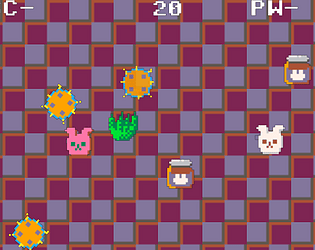 Your object is to lead two rabbits and defeat the enemies. The pink rabbit follows the white rabbit. Only the pink rabbit can defeat the enemy.