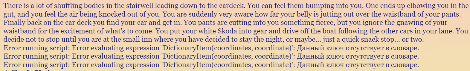 Best game in the jam for me right now. Art, story, text, gameplay, almost everything is good. But there is one thing that spoils the art - the friezes. This is not the first game on this engine that can freeze at the most inconvenient moment, which is why I often save on it. But since the opportunity to stay here is limited (which I do not blame the author for), I had to cross the third and fourth nights three times halfway to the finish line, or at the finish line itself.