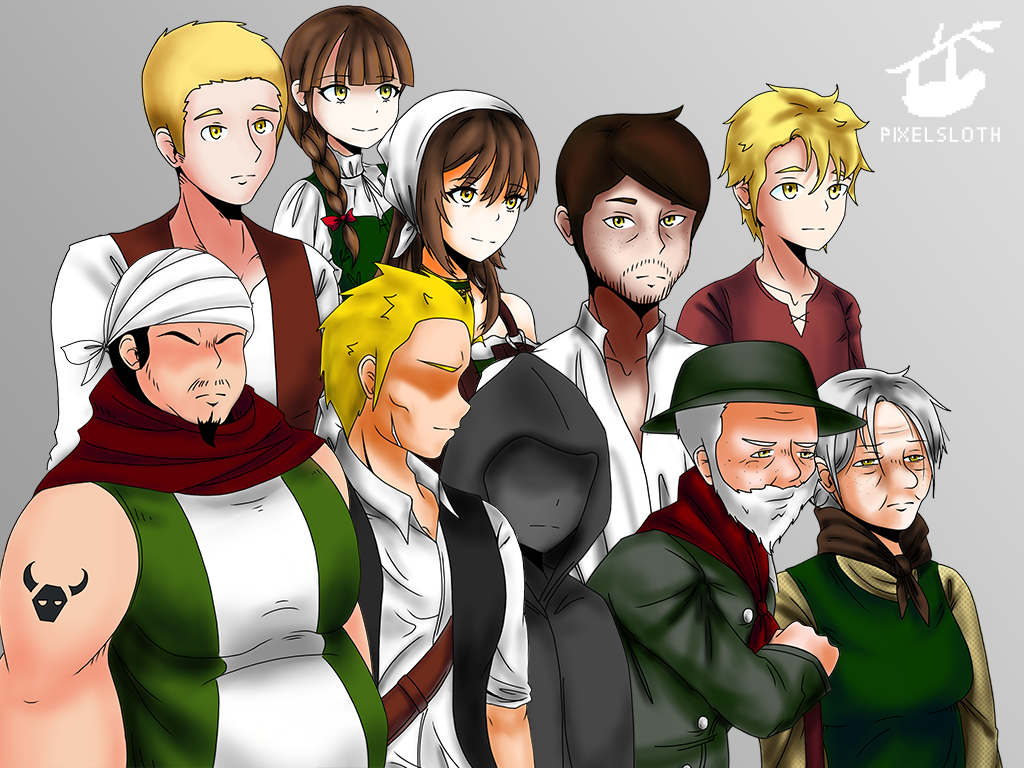 10 Unique Characters: 2 Bad guys, 1 Unknown NPC, and 7 Villagers (Elders, Adults, and Children).