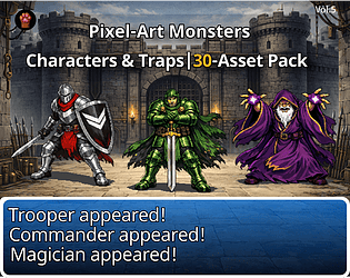 JRPG villains + cursed traps & weapons (30 PNG pixel sprites).