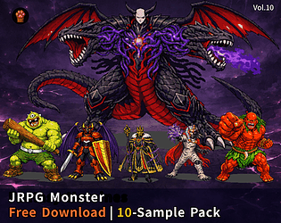 Classic fantasy pixel monsters (10 free PNG sprites).
