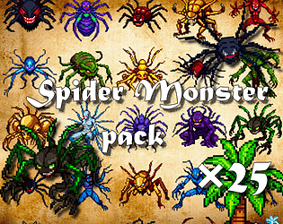 Download 25 spider monsters for every games ! 64×64 pixels !